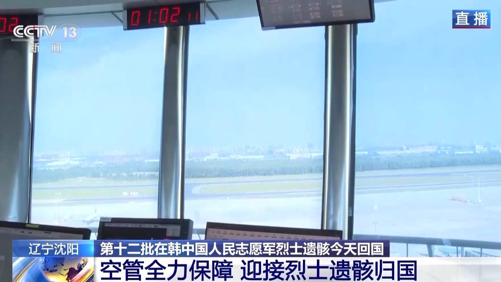 rrrr总台记者 卜晓菲:我现在所在的位置是东北空管局空管中心的塔台管制室,可以简称为“沈阳塔台”。目前的气象条件对航空运输不会造成影响。东北空管局空管中心塔台管制室已经做好了迎回仪式之前的所有准备工作,为确保今年的志愿军烈士遗骸运送飞行保障任务安全顺畅,提前选拔了思想和业务素质过硬的管制员、党员组成重要任务保障组,制定保障方案,并协同气象部门进行天气预测,根据军民航协同指挥任务特点提前制定了多套应急预案。